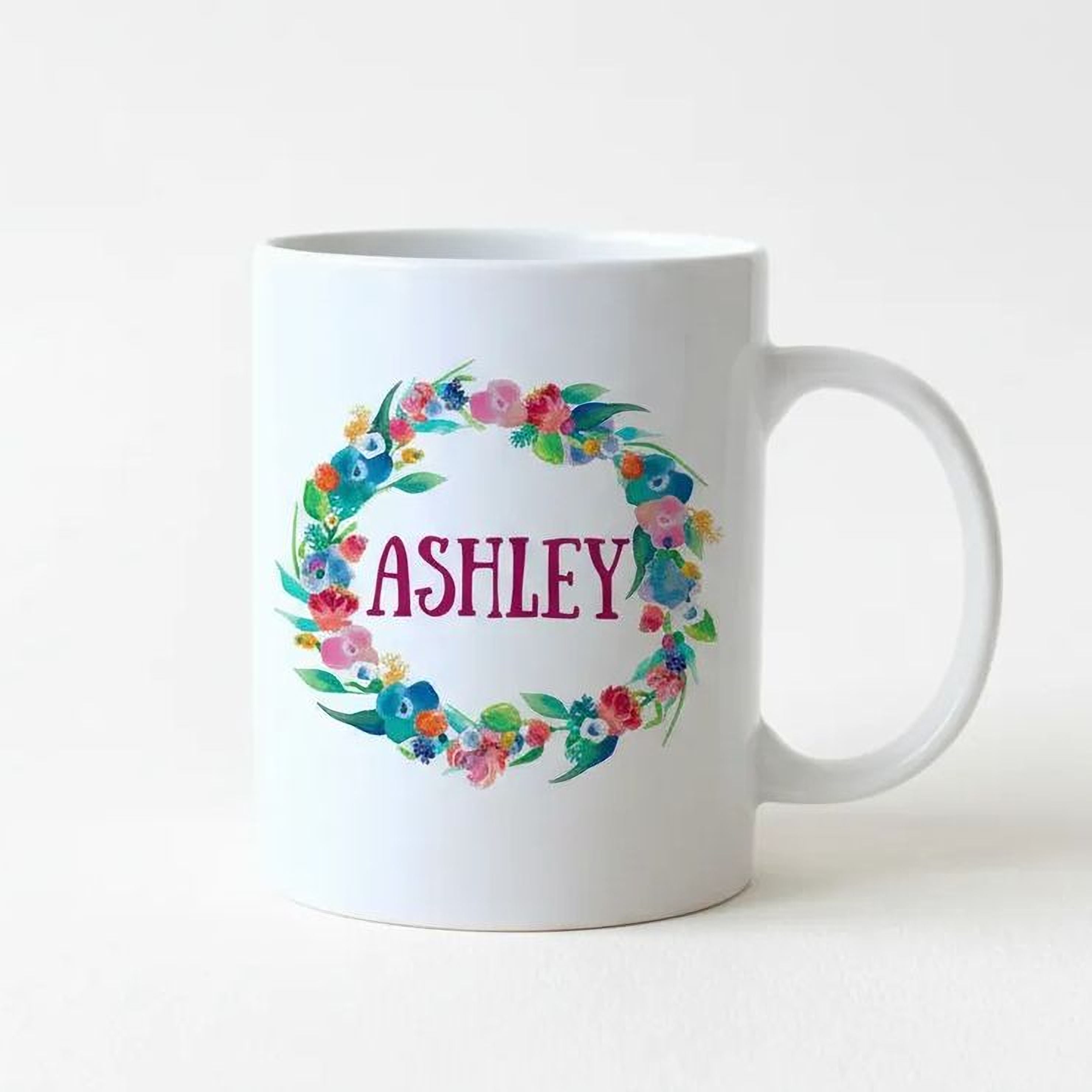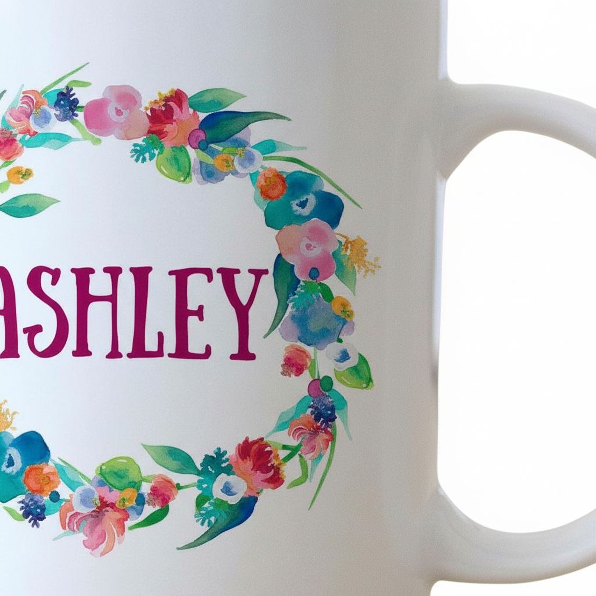 - Floral watercolor mug with unique wreath design for a personalized touch