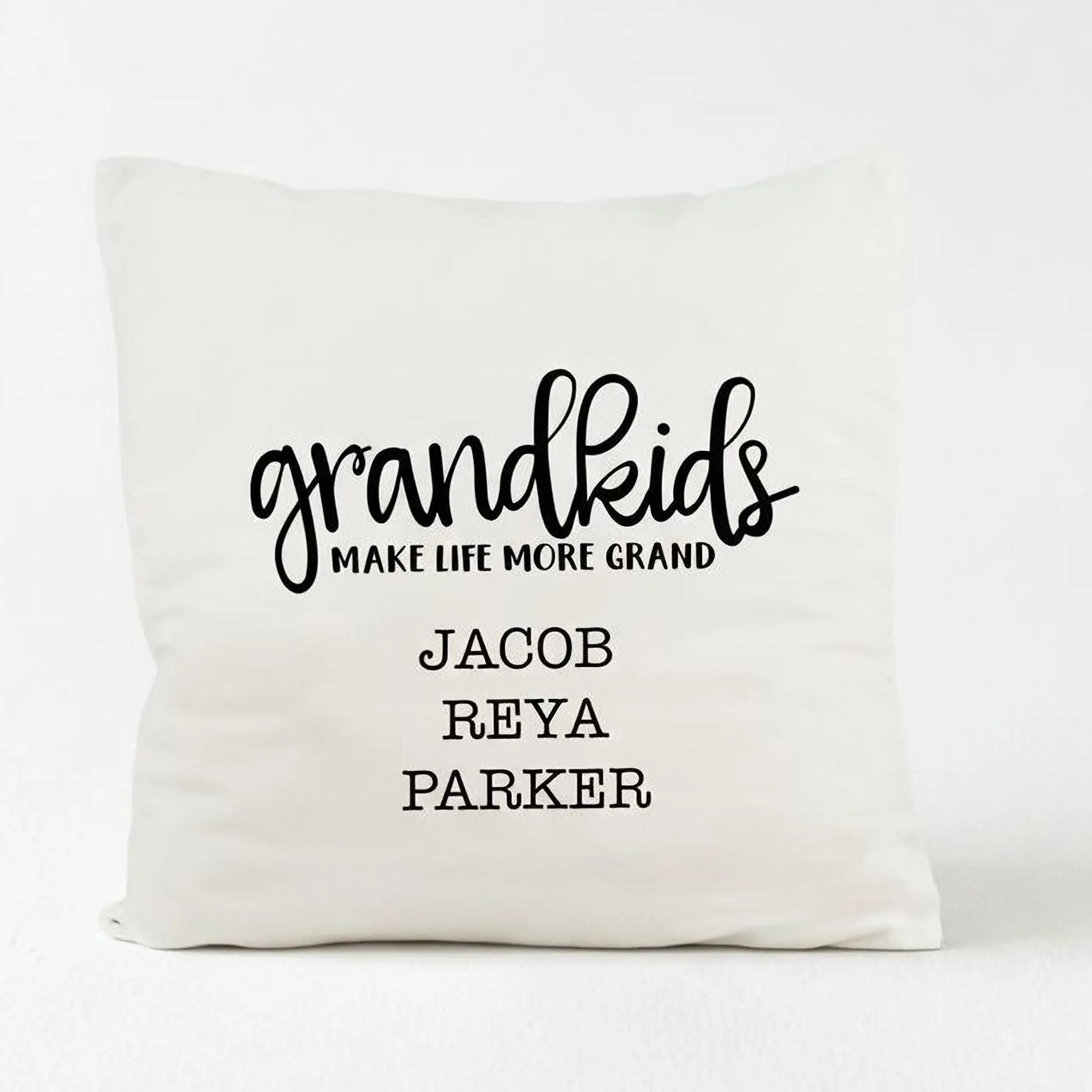 Personalized Pillow Cover - Grandkids Make Life Grand - Christmas Gift for Grandma - Throw Pillow Personalized with Grandchildrens Names