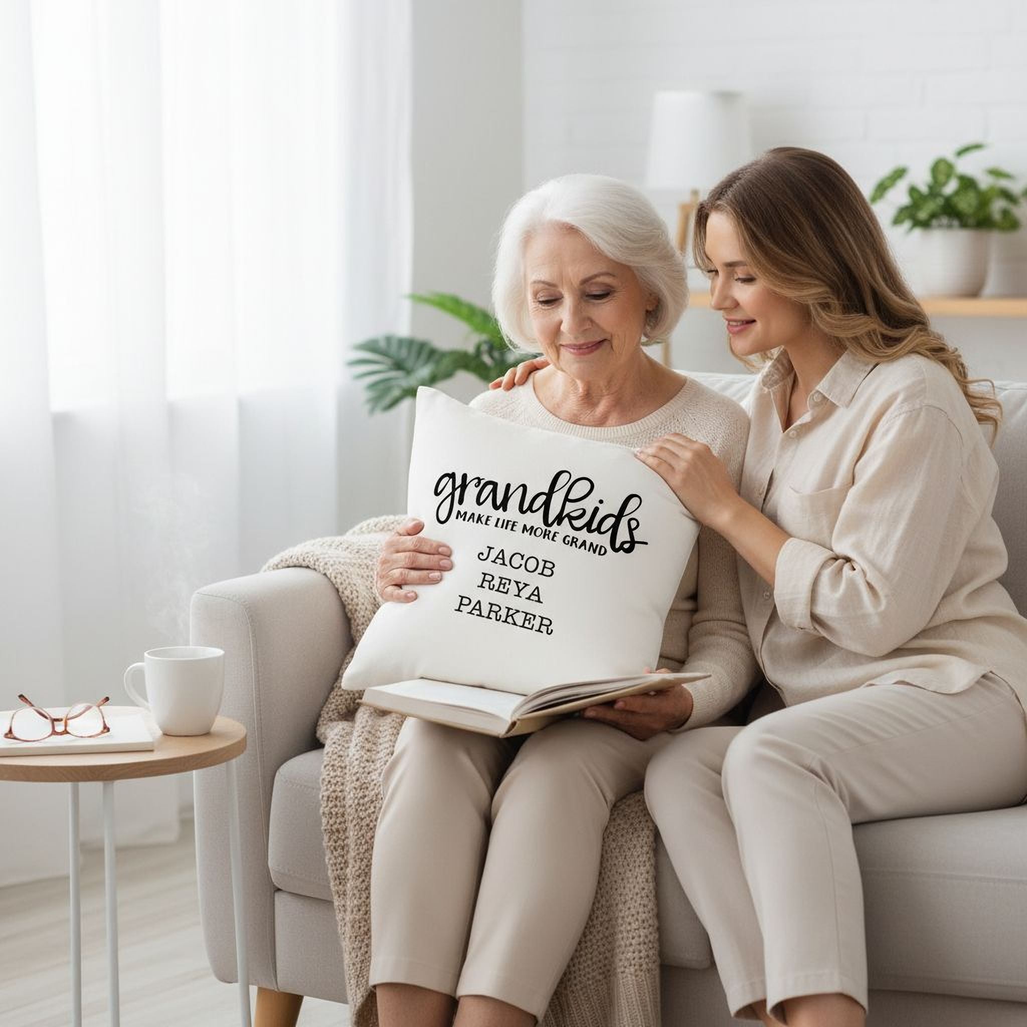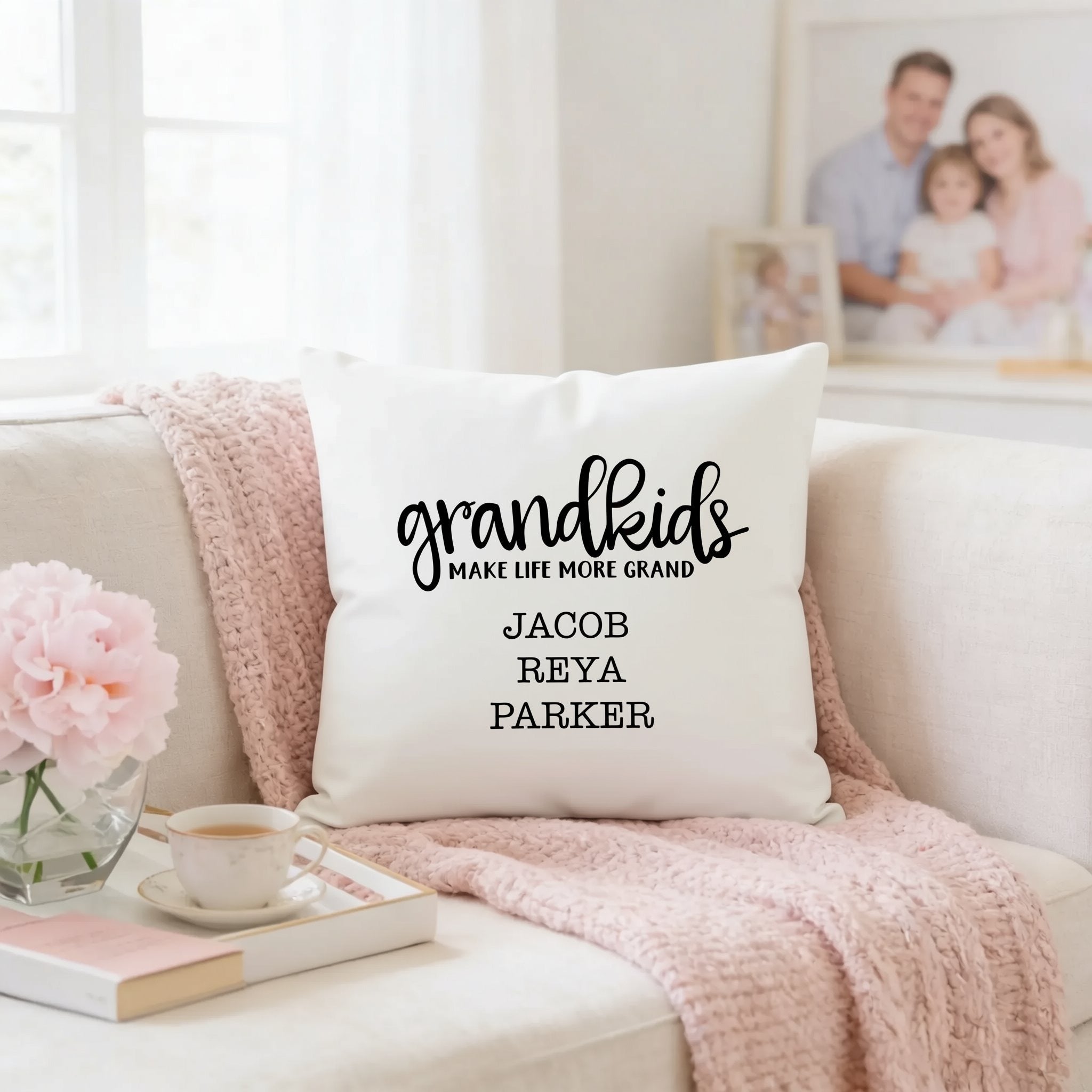 - Personalized pillow cover with grandchildrens names for a unique grandma gift idea