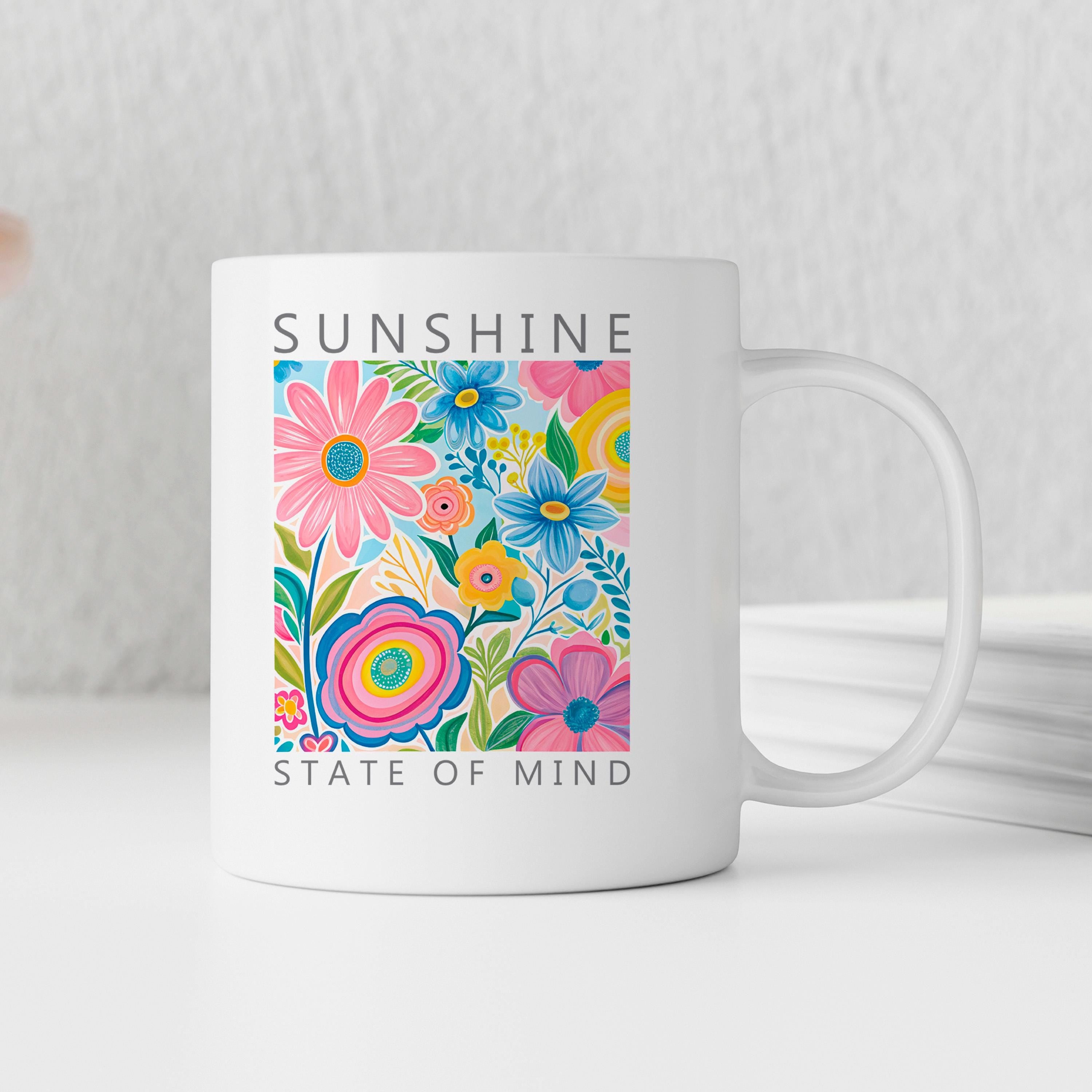 Bring home the sunshine state mug that elevates your daily routine with its happy morning mug vibe. Its bright botanical mug pattern captures the essence of summer gardens and blooming flowers, ensuring every drink feels like a refreshing moment of calm and joy. Embrace color, quality, and convenience all in one with this botanical ceramic coffee mug.