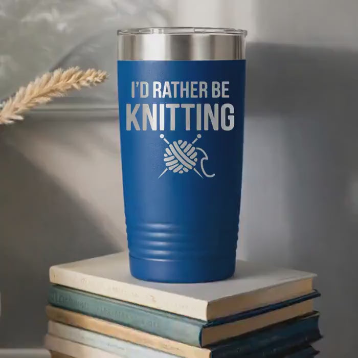 Our knitting tumbler is the perfect stainless steel cup designed specifically for knitters and craft enthusiasts who want to enjoy their favorite beverages while working on their projects. This insulated drinkware features a charming "I'd Rather Be Knitting" design, making it an ideal yarn lover gift that combines style and function. Crafted with double wall insulation, this hot cold tumbler keeps drinks at the perfect temperature for hours, whether you prefer coffee, tea, or cold refreshments during your knitting sessions.