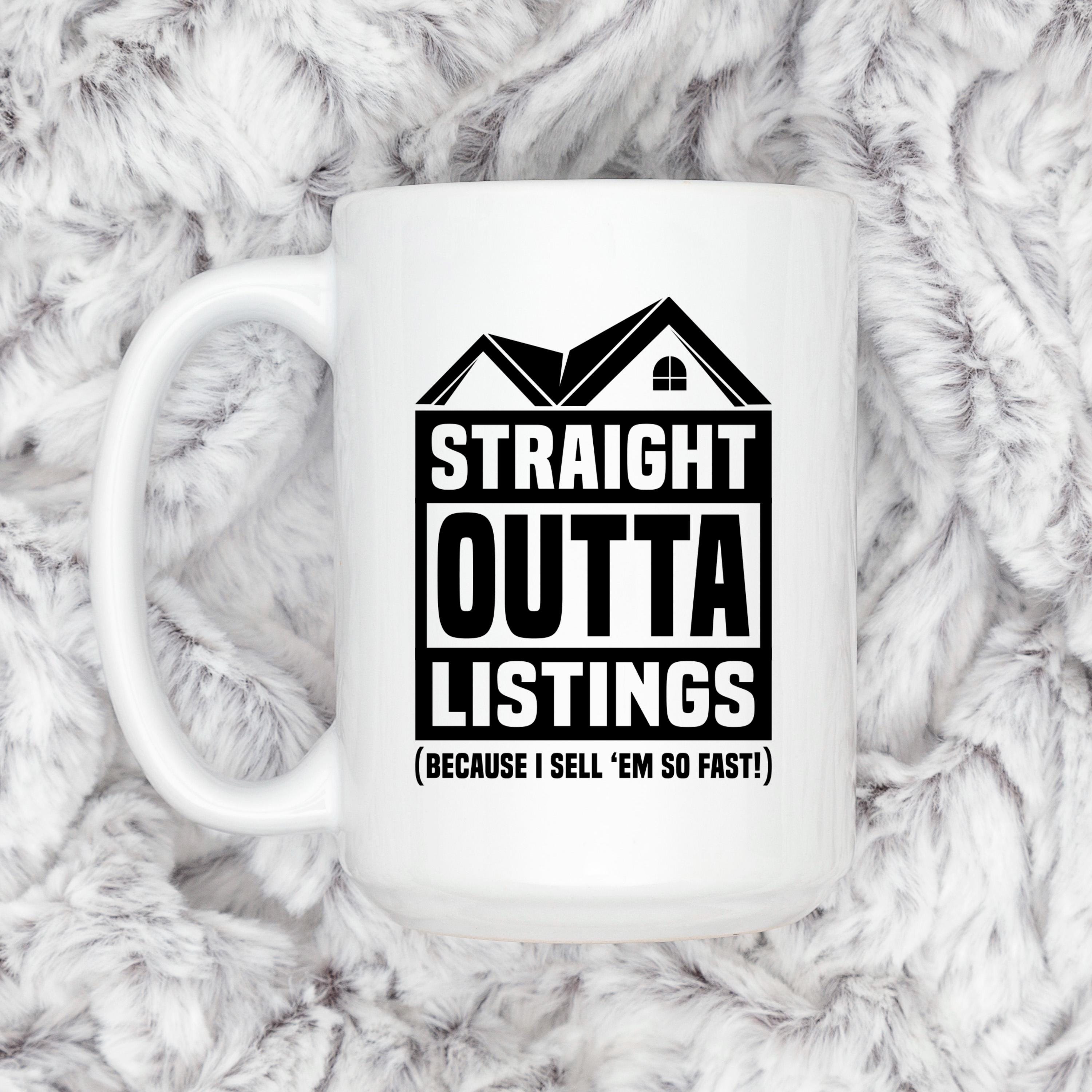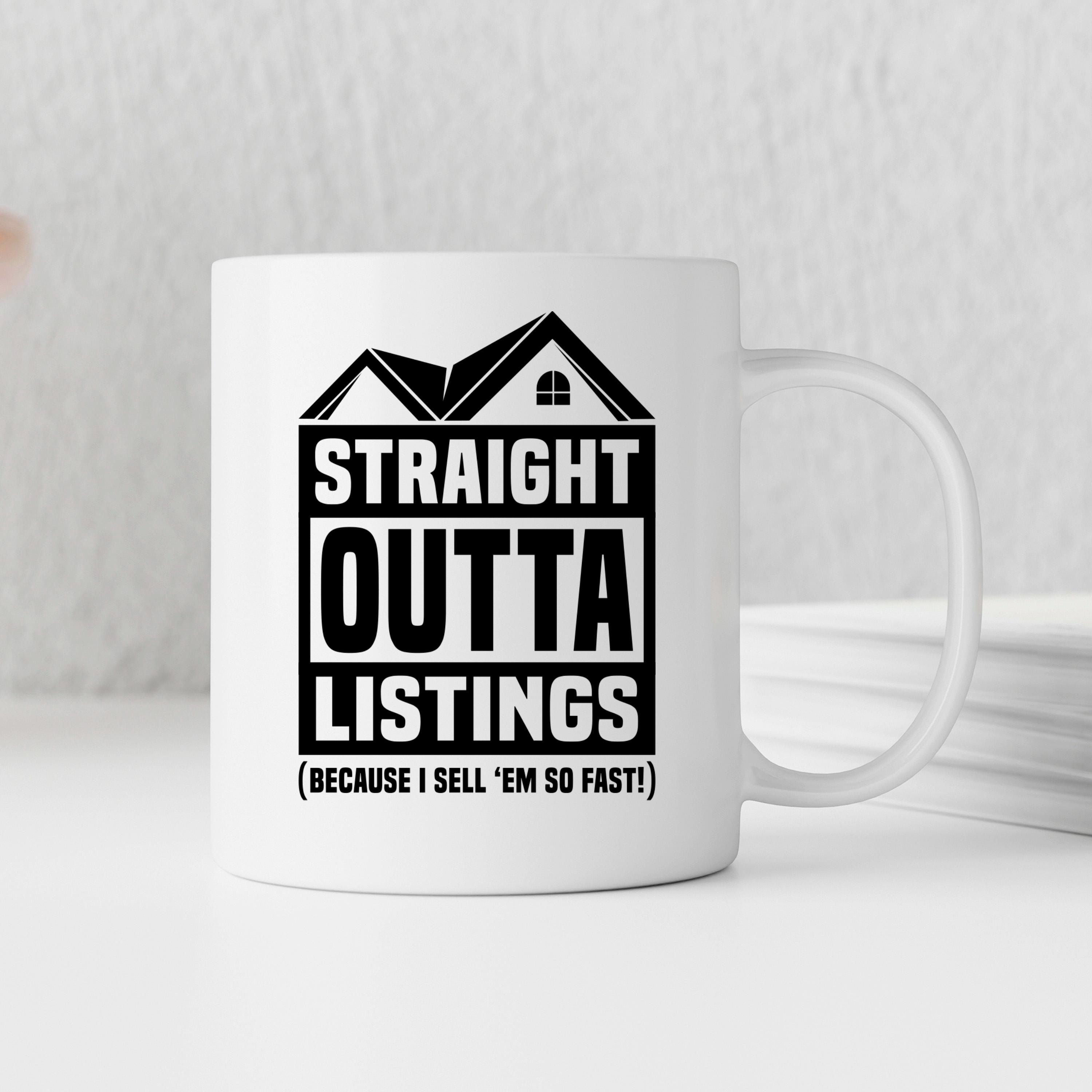 This real estate mug is the perfect way for realtors and property agents to start their day with a bold statement and a touch of humor. The "Straight Outta Listings (Because I Sell 'Em So Fast!)" design highlights your success while fueling your morning routine with plenty of coffee or tea. Crafted from sturdy ceramic, this agent coffee cup delivers both style and durability for busy professionals in the housing industry.