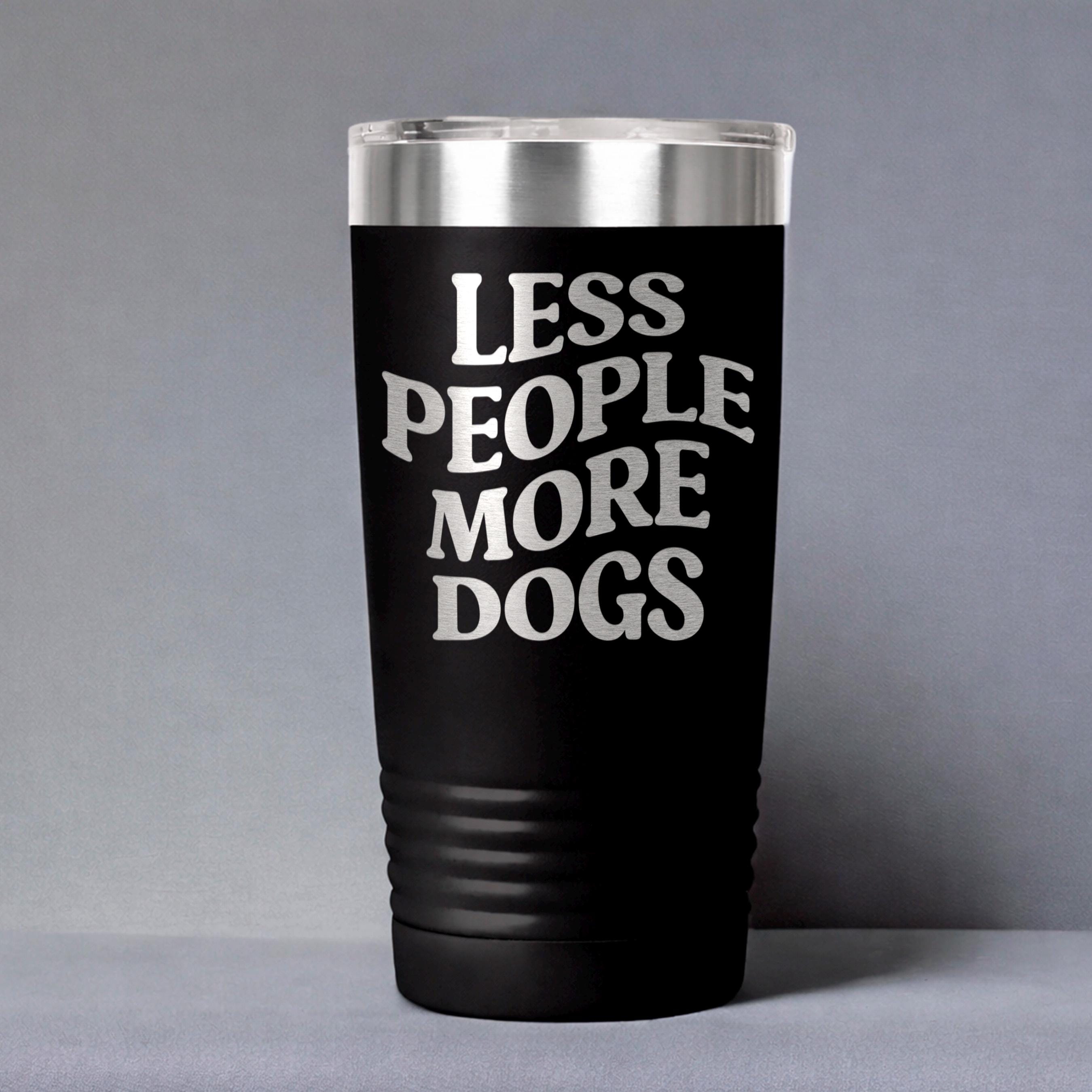 This stainless steel tumbler is designed for pet lovers who want a reliable and stylish way to enjoy their favorite drinks on the go. The Less People More Dogs Tumbler combines durable stainless steel construction with double wall insulation to keep your coffee hot or cold beverages chilled for hours. Perfect as a dog lover gift or a personal daily companion, this 20 oz tumbler fits most car cup holders and features a custom travel mug design that expresses your passion for pets.