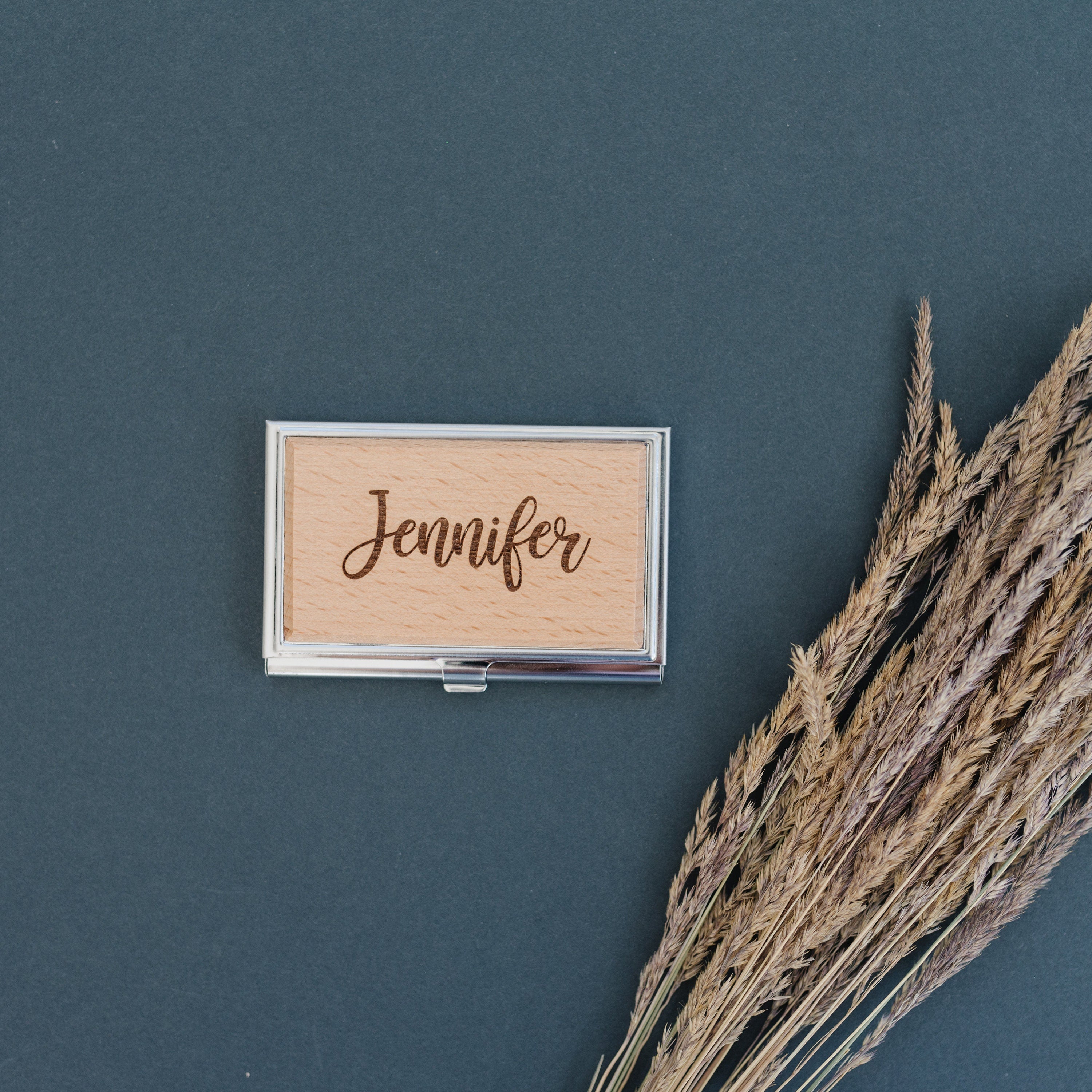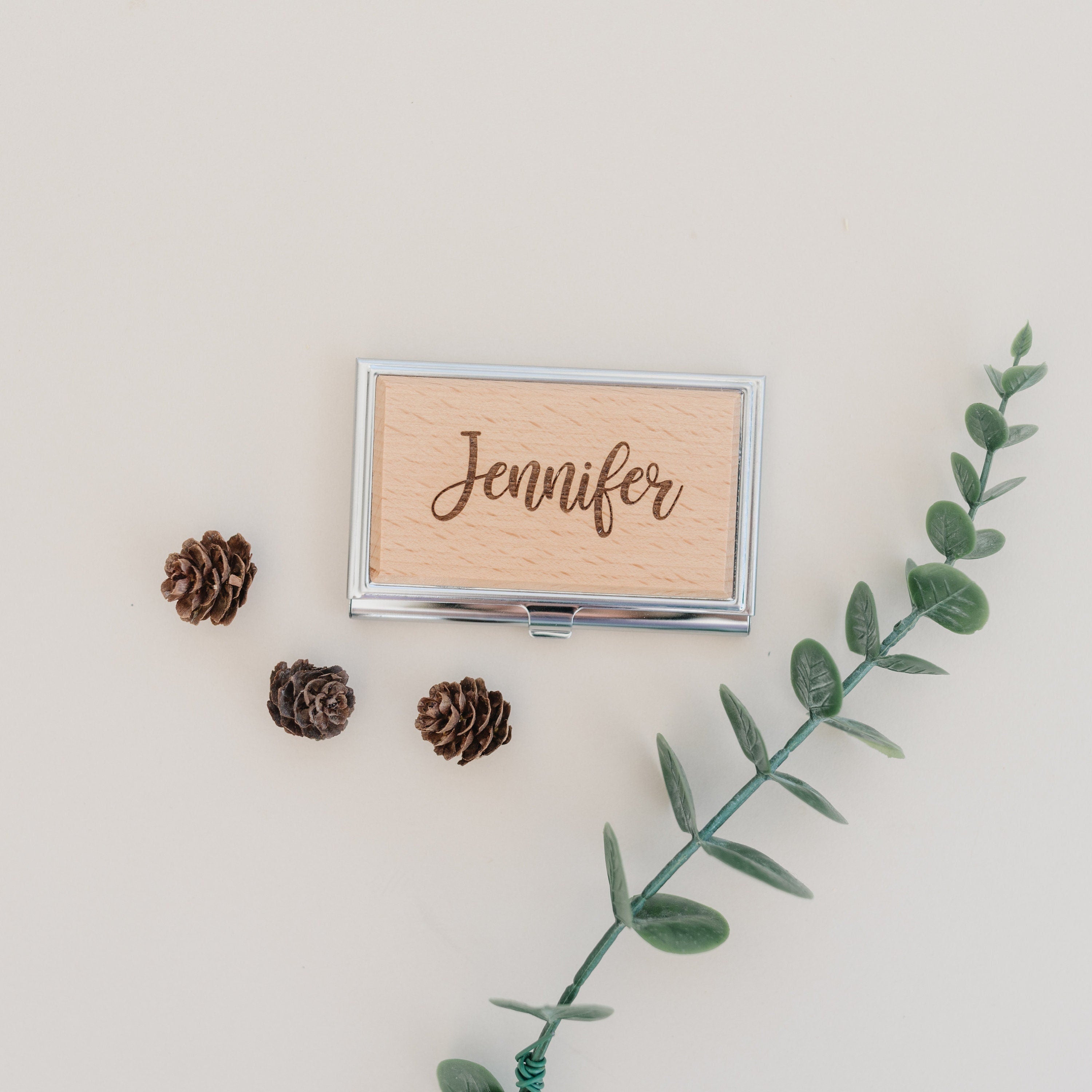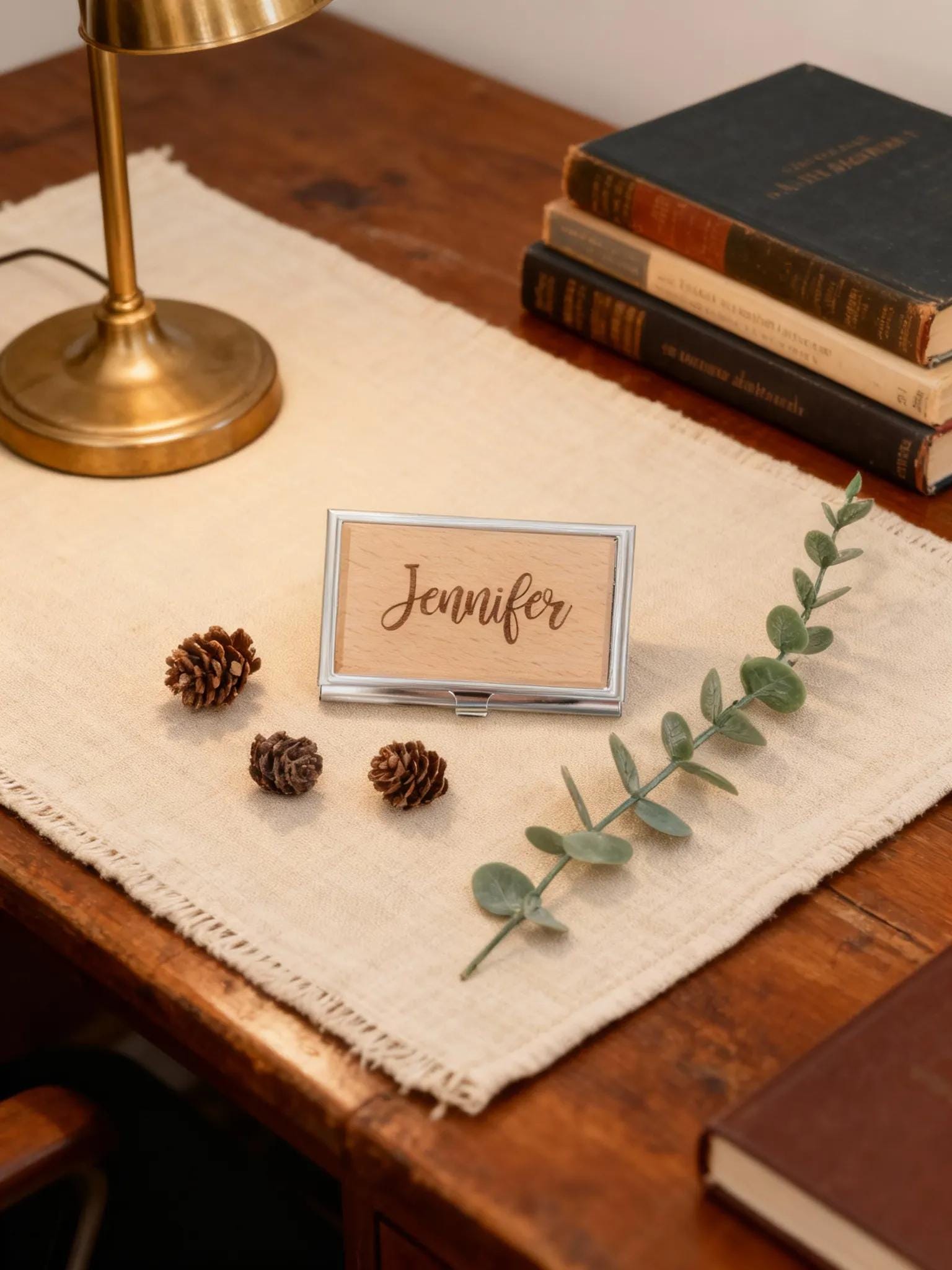 The engraved bamboo card holder combines minimalist business accessory design with practical office card organizer functionality. Its lightweight and portable credit card holder design fits easily into purses or pockets, ensuring you stay organized on the go. Made from eco-friendly materials, this wood business card case supports sustainable choices without sacrificing style.