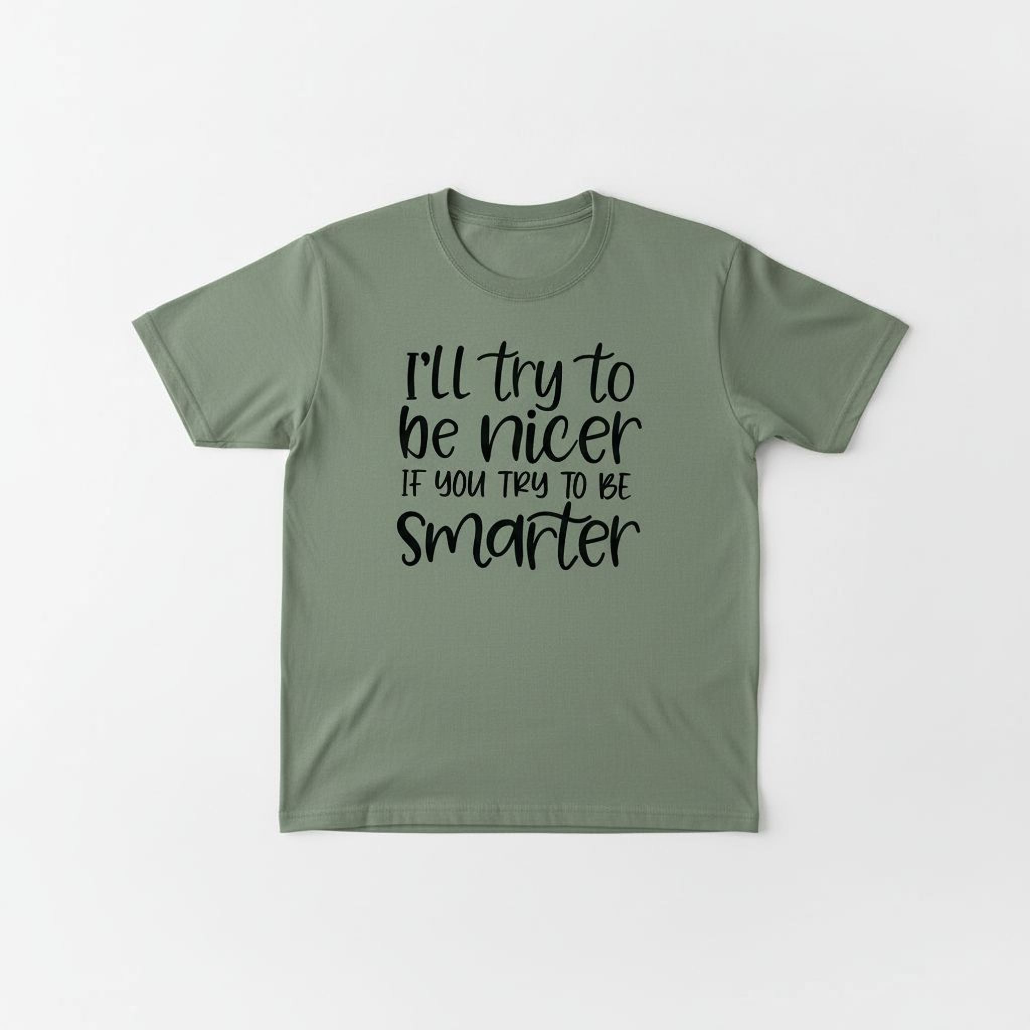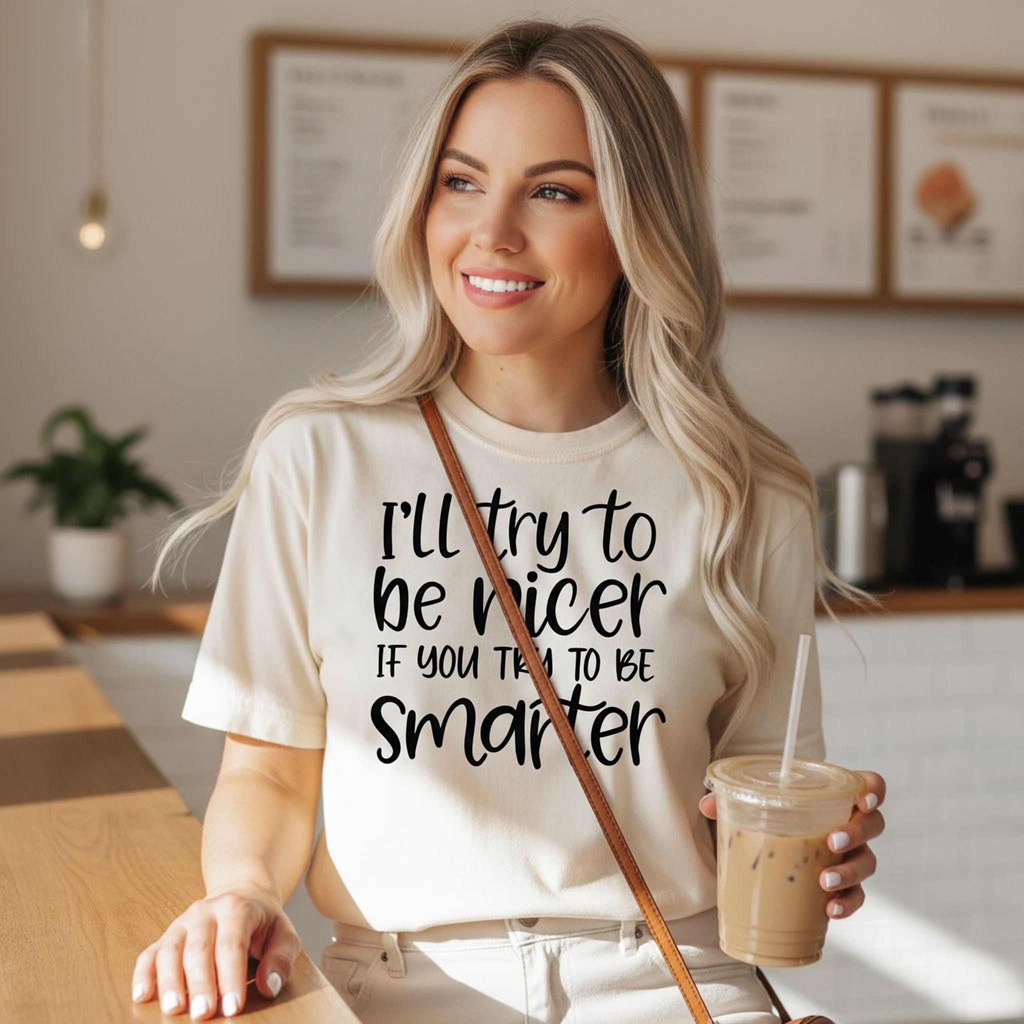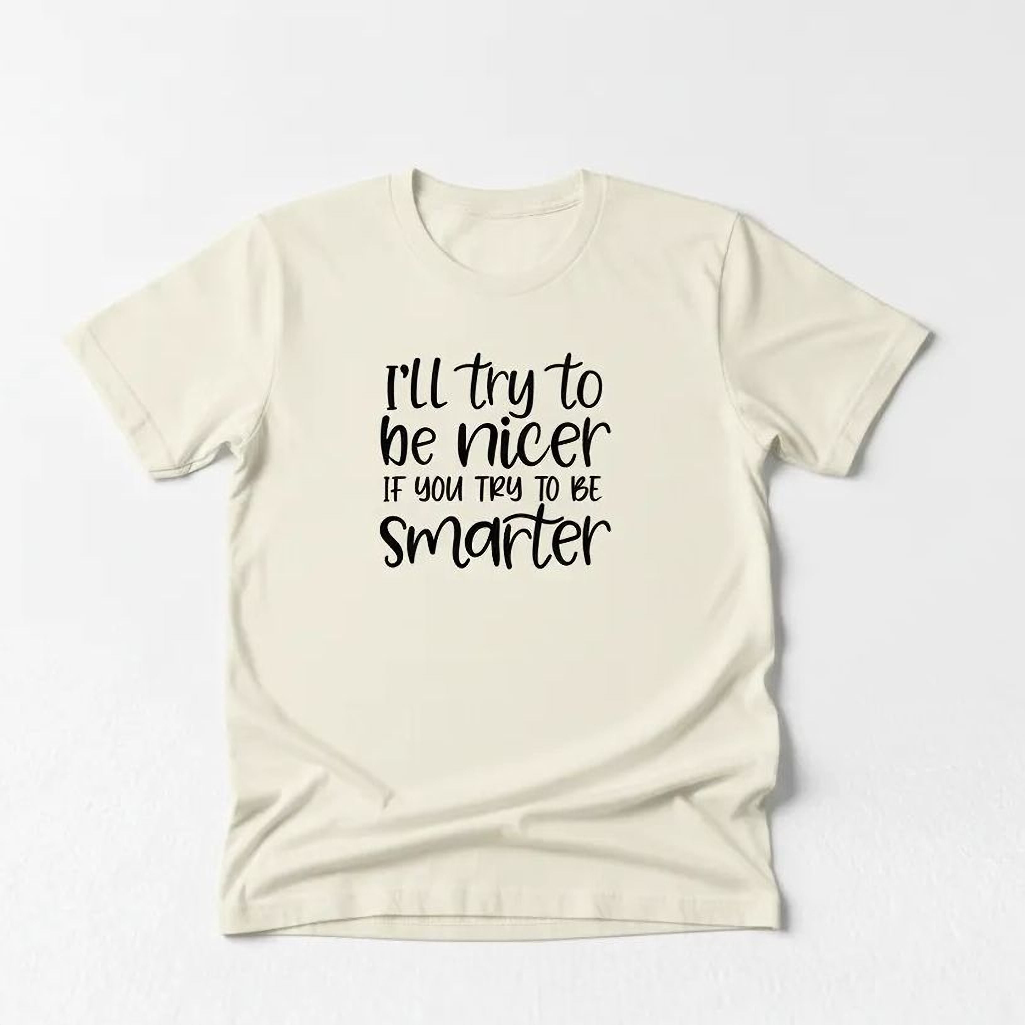 Funny Sarcastic Quote Shirt For Women – I'll Try To Be Nicer If You Try To Be Smarter Tee – Sassy Graphic T Shirt With Attitude