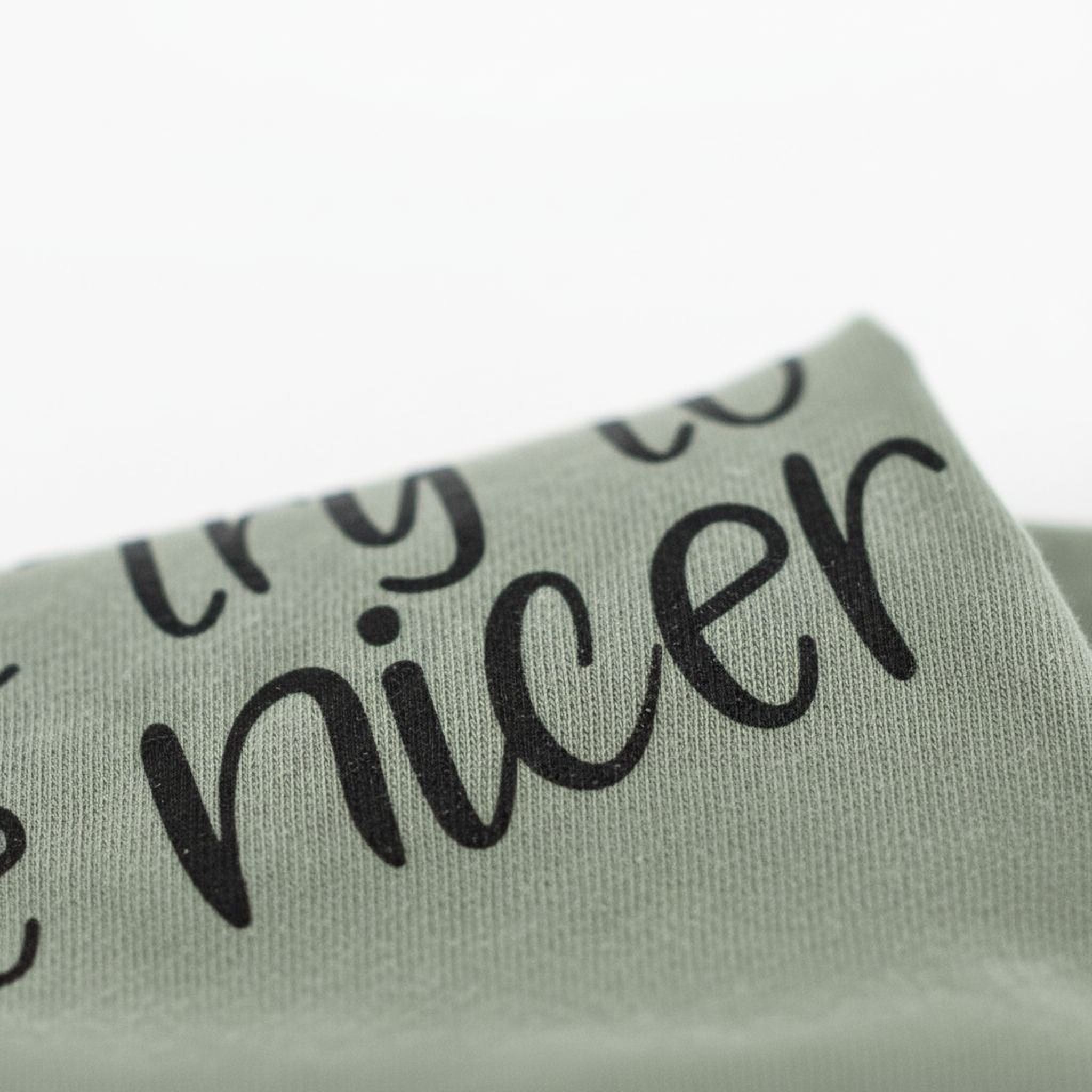- Statement-making design featuring the playful quote “I’ll try to be nicer if you try to be smarter”