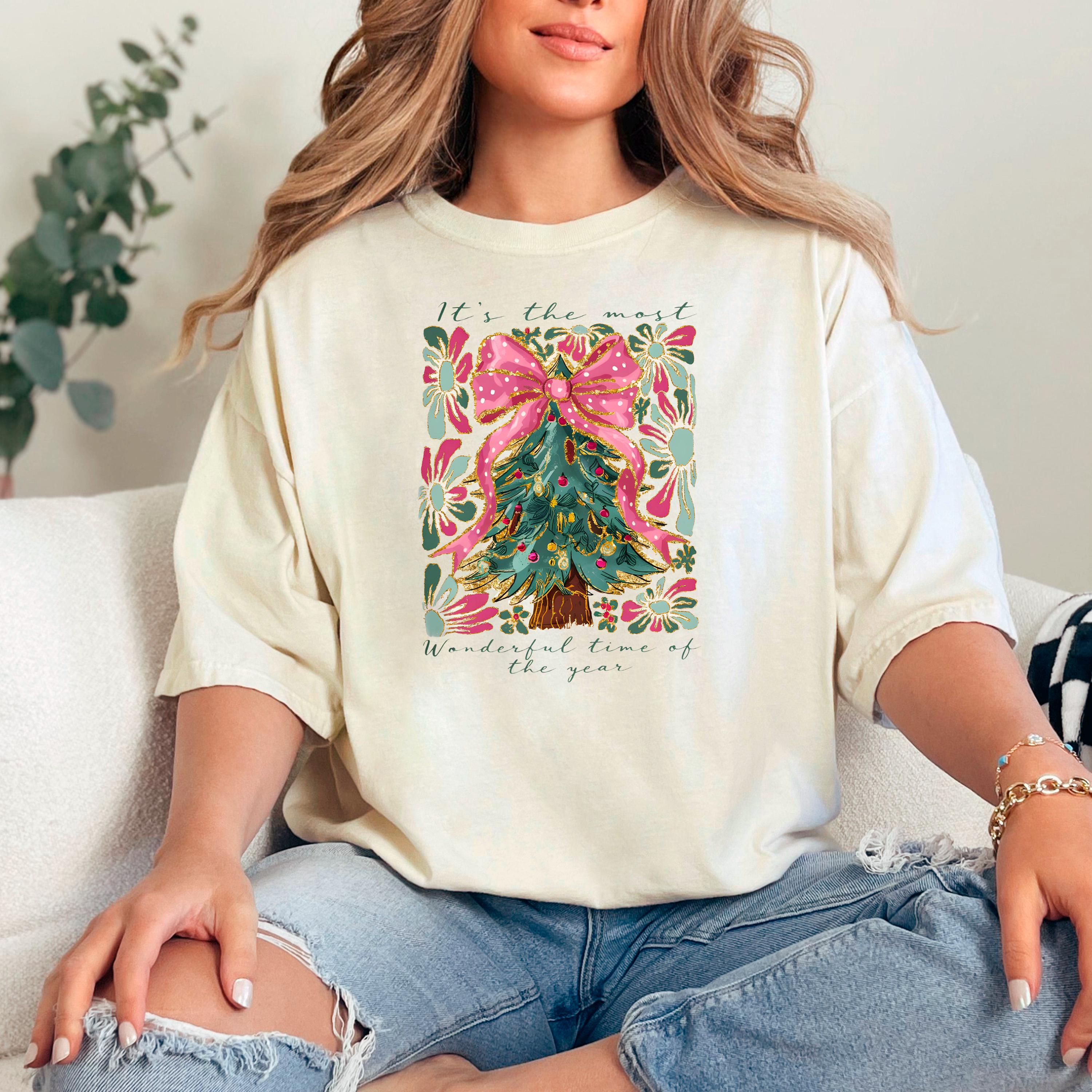 Most Wonderful Time of Year T-Shirt Comfort Colors Christmas Tree Graphic Holiday Pajama Top Cozy Gift
