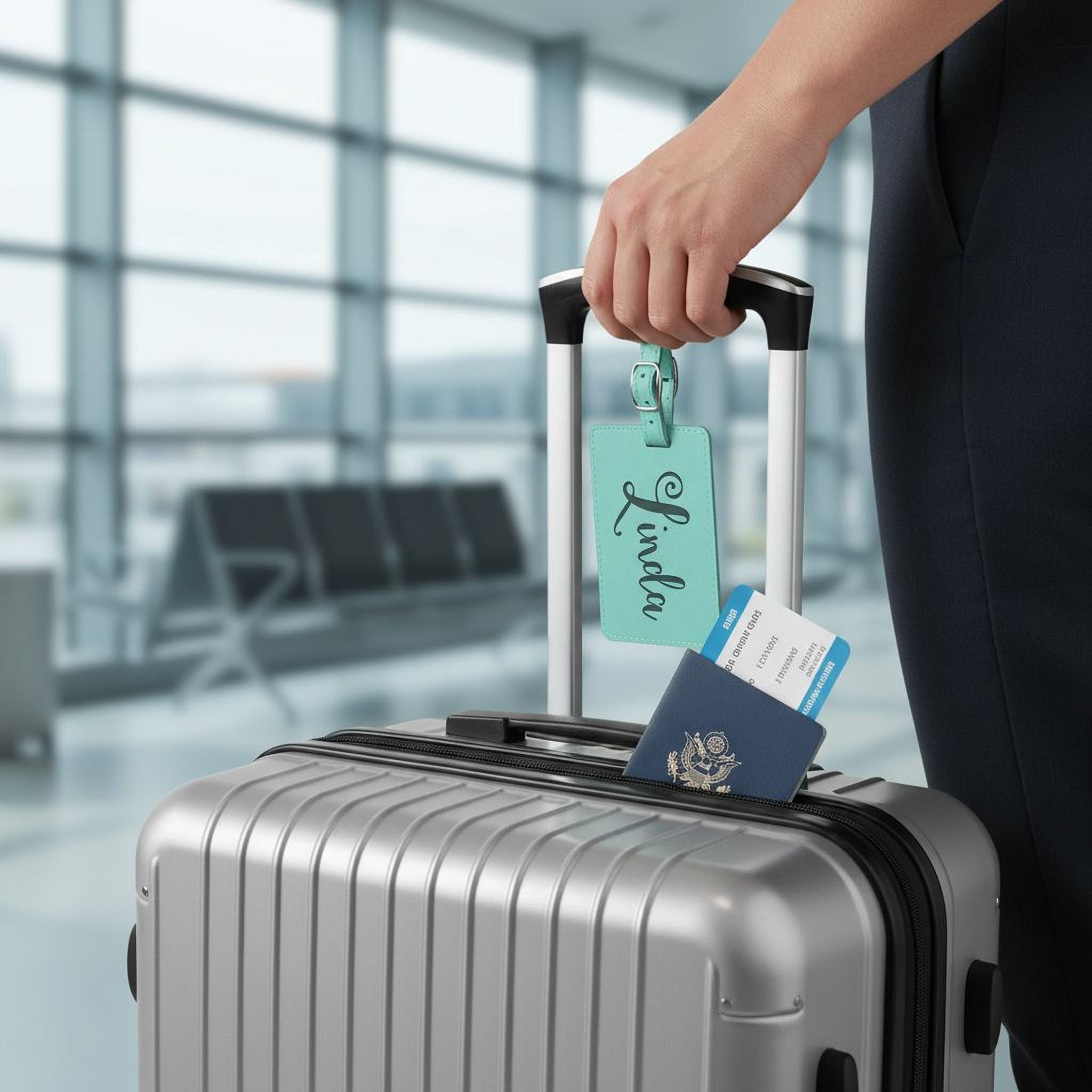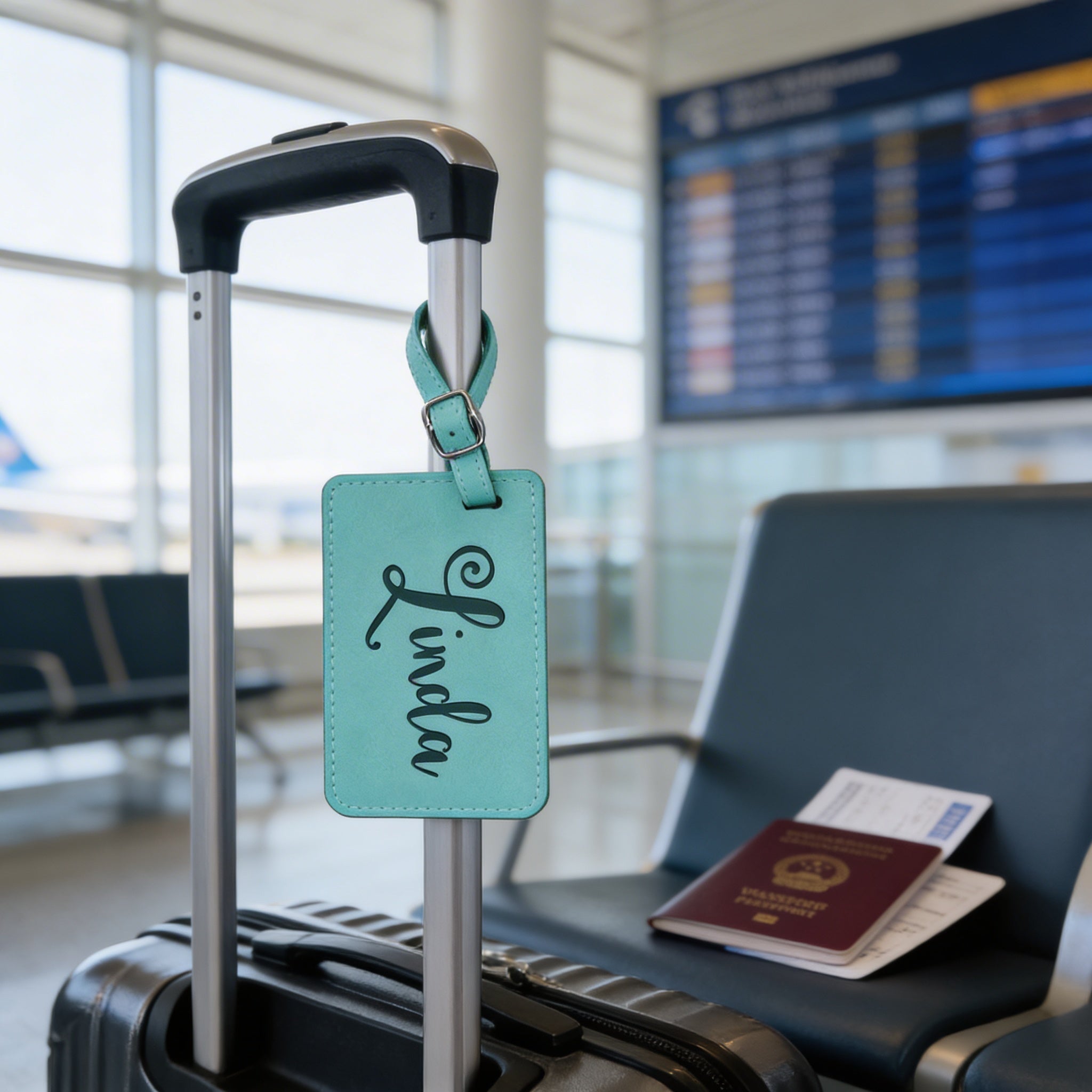 - Durable faux leather material → protects your baggage tag from wear and tear