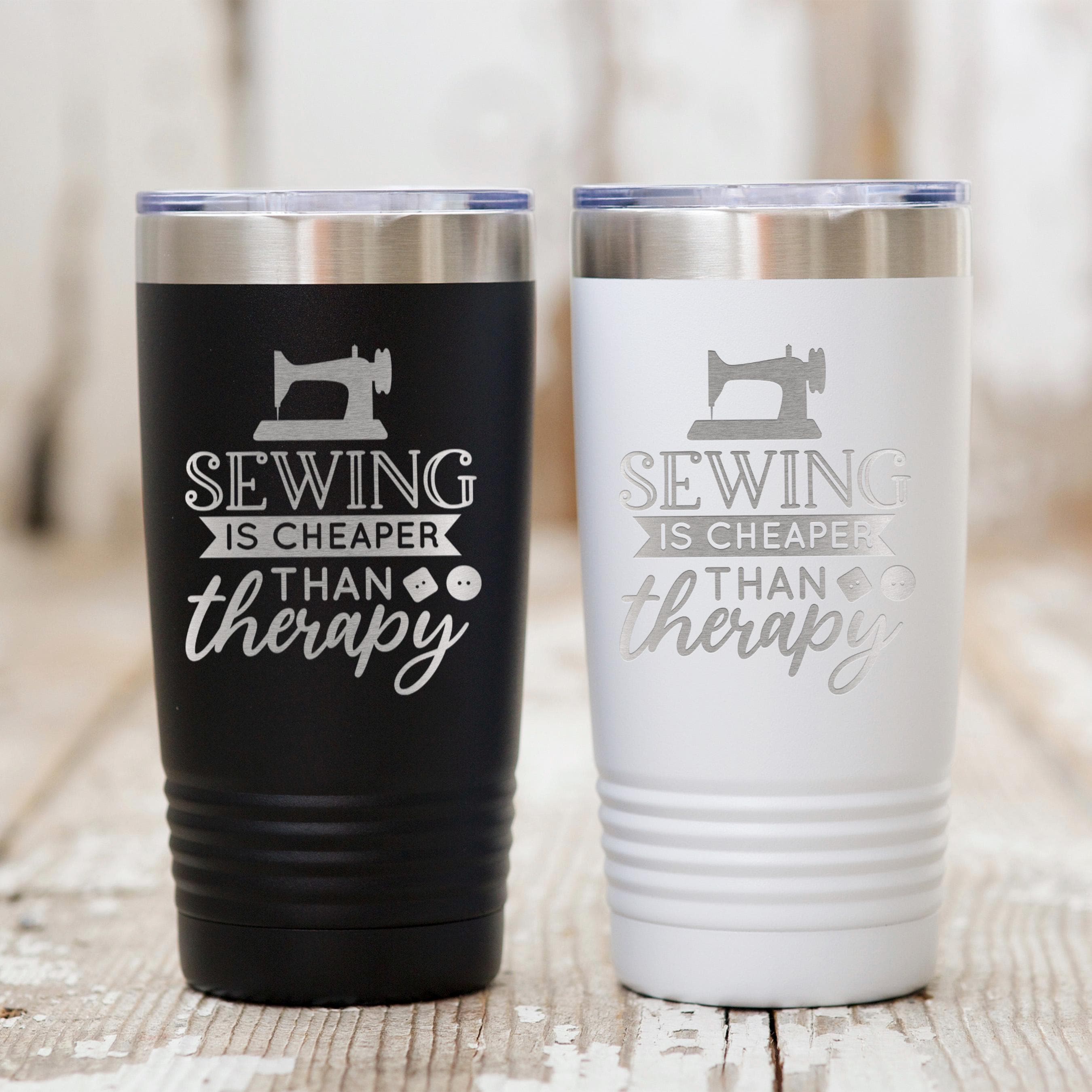 Add a splash of personality to your daily routine or surprise a loved one with this one-of-a-kind sewing tumbler!