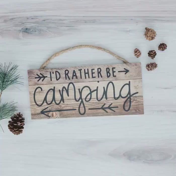 This rustic camping sign is the perfect addition to your outdoor-themed space, delivering a cozy and adventurous vibe with the playful phrase "I'd Rather Be Camping." Designed for camping enthusiasts, this wooden wall decor brings a warm, vintage charm to any cabin, camper, or outdoor room. Measuring 4.5 inches by 10 inches with a thickness of 0.25 inches, this weathered wood sign is crafted from durable MDF, ensuring long-lasting quality and rustic appeal.