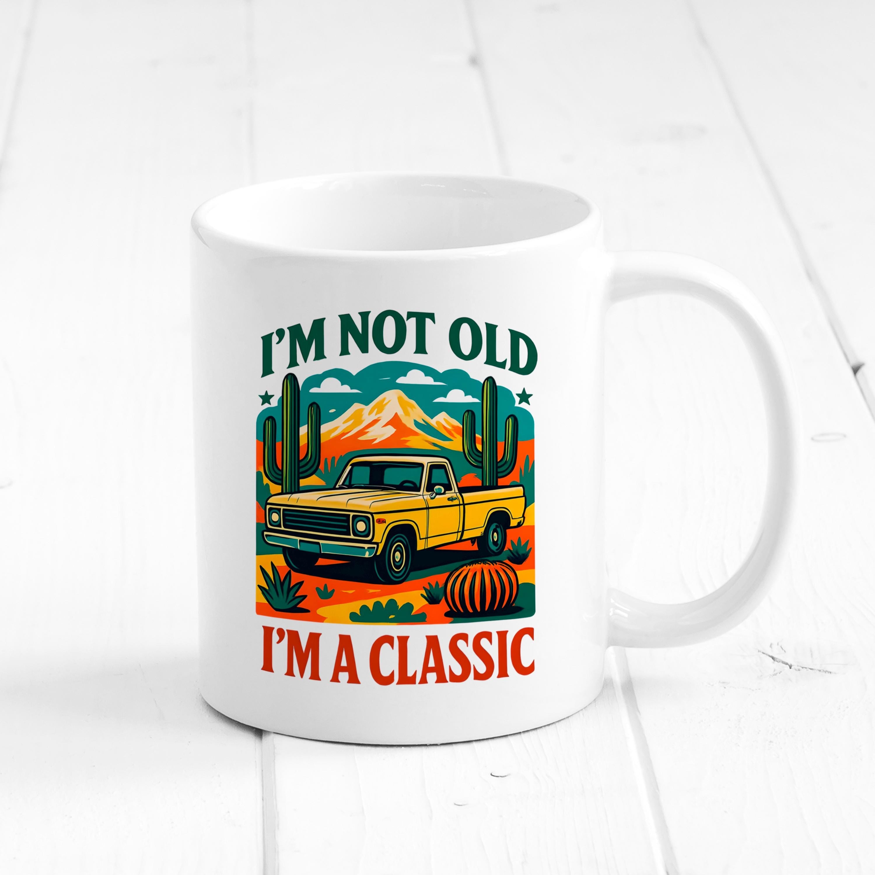 Start your morning with this vintage car coffee mug, designed to bring a nostalgic charm and playful spirit to your daily routine. The vintage car coffee mug features a colorful desert cacti mountain scene that captures the essence of classic style while offering a generous capacity for your favorite hot beverages. Crafted from high-quality ceramic, this mug delivers durability and microwave safe convenience, making it an ideal choice for coffee lovers seeking both function and fun.