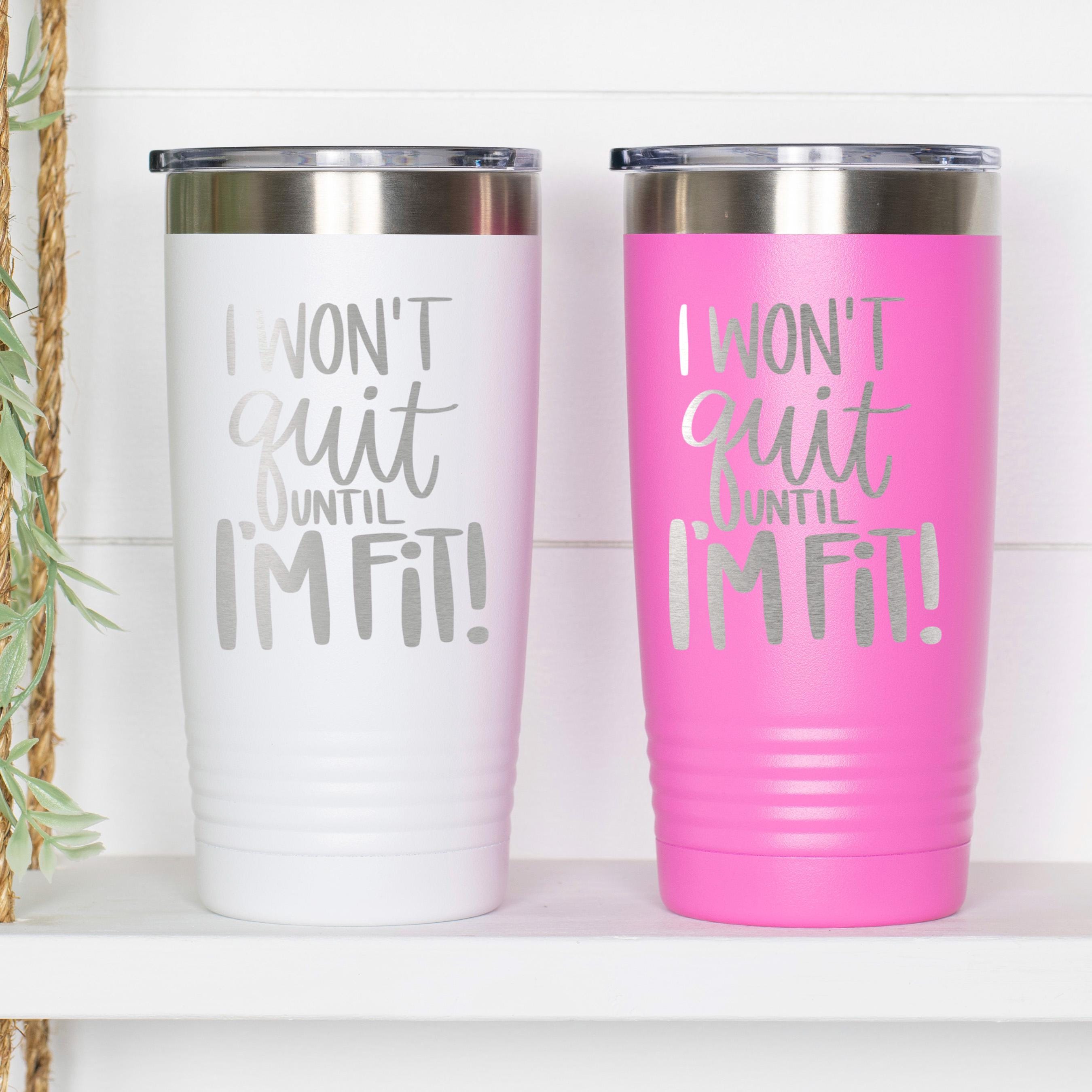 The motivational quote, "I won't quit until I'm fit," adds an inspiring touch to your fitness journey and makes this tumbler a great gift for fitness enthusiasts, gym lovers, or anyone striving for their health goals. Whether you're heading to the gym, office, or outdoor adventures, this durable tumbler is designed to withstand daily use and keep you energized on the go.